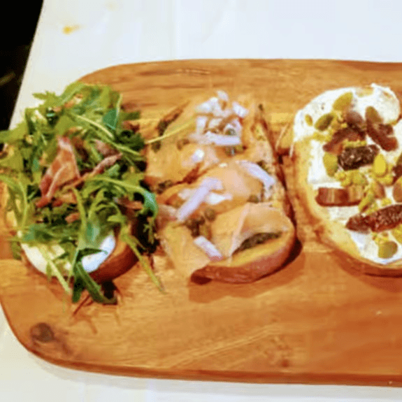Chef's meat pick, chef's cheese pick, hummus, nuts, olives, crostini, crackers, and other chef's favorites