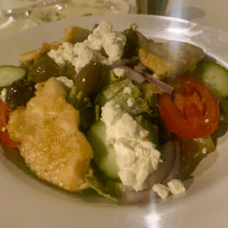 Romaine lettuce, tomatoes, cucumber, red onion, feta cheese, house balsamic vinaigrette